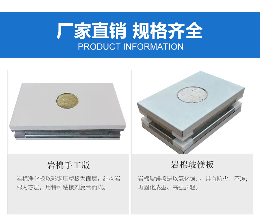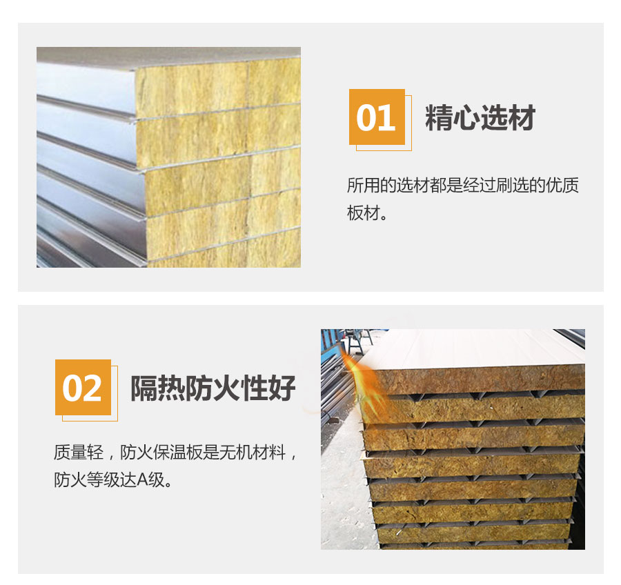 巖棉夾芯板其芯材是以玄武巖及其它天然礦石等為主要原料,經高溫熔融成纖維,加入適量粘結劑,固化加工而制成的。是同類(夾芯板系列)中耐火性能最強的一種新型防火板材。該產品適用于烘房、烤漆房、工業設備、建筑、船舶的絕熱、隔音等,同時適用于電子潔凈房、凈化房、防爆防火車間吊頂、隔斷等。通過國家檢測中心耐火限檢測。耐火時間1小時。本產品板厚可制成50-100mm,可根據客房要求定做。